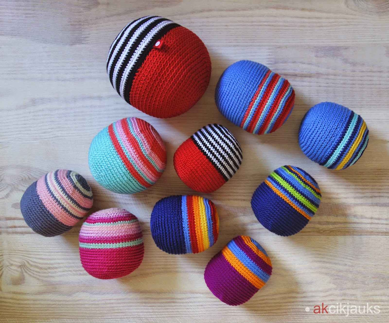Šie tamborētie grabuļi - bumbas tika pasūtīti kādam veikaliņam tālajā Dubajā, ko apsaimnieko latviete. Grabuļbumbām ir ļoti patīkama klusināta skaņa.